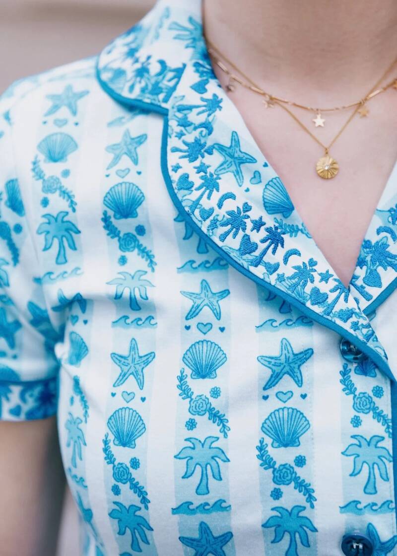 Woven with coastal inspired embroidery, our 100% Supima cotton pajamas hug you with comfort ensuring a dreamy night's sleep and the coziest mornings.